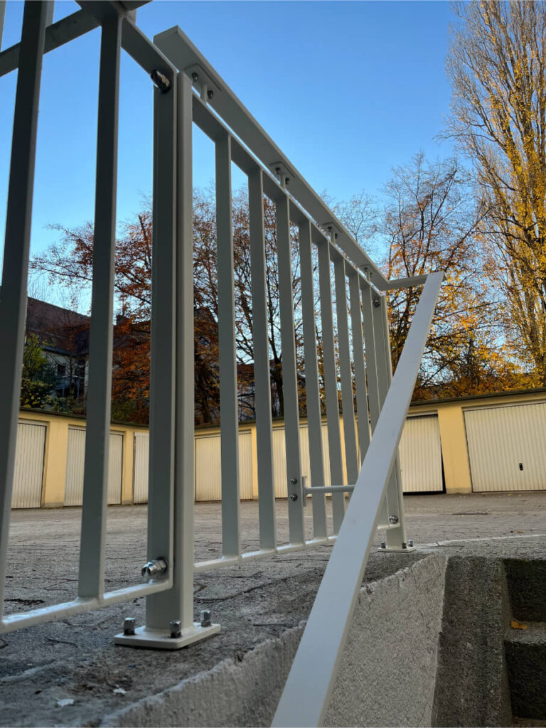 Unsere Geländer fertigen wir aus verzinktem oder pulverbeschichtetem Stahl sowie aus